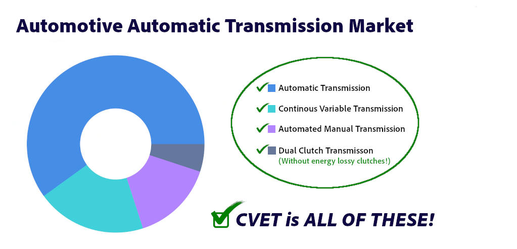 The vision of CVET Power Corp. is to become a leading source of transmissions for the globally distributed automotive industry. The adoption of CVET technology as the future of transmission systems will benefit not only the industry, but the environment. CVET technology can dramatically impact our ecological future through the reduction of carbon footprint in the automotive and other industries on a mass scale, impacting and reducing the rate of climate change.