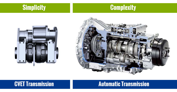 However, the mechanical CVTs require significant forces to produce the continuously vary the transfer ratio between the input and output. There is only one source for these forces, and that is the enigne, which drives the hydraulc pumps to produce the foreces required to vary the CVT transfer ratios. These mechanical and hydraulic forces required to control the CVT reduce the overall CVT system efficiency.